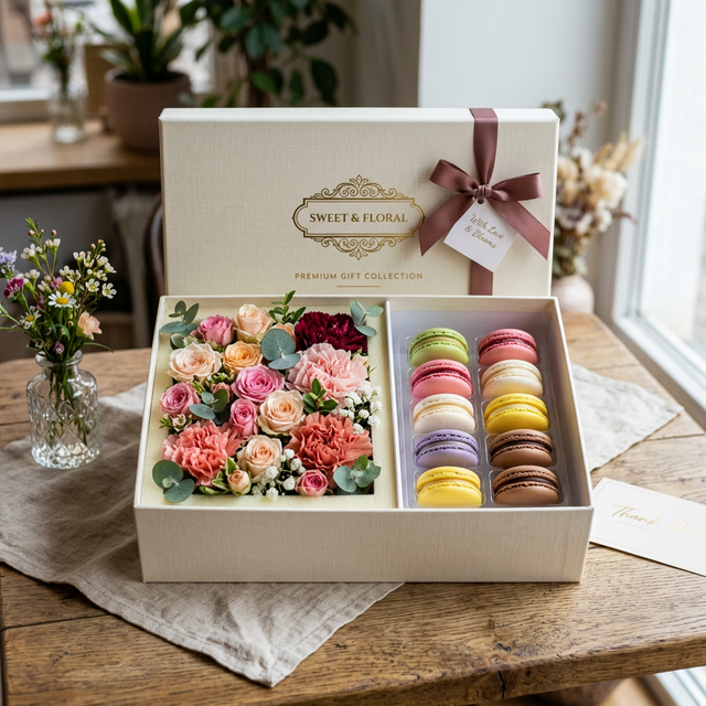 Подарочный бокс "Макаруны и Цветы"