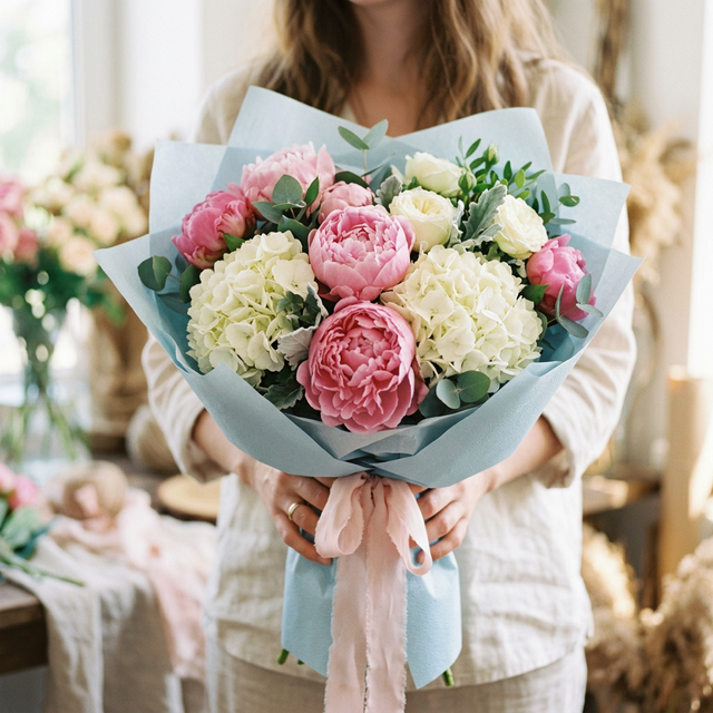 Букет "Светлые чувства" с пионами и розами